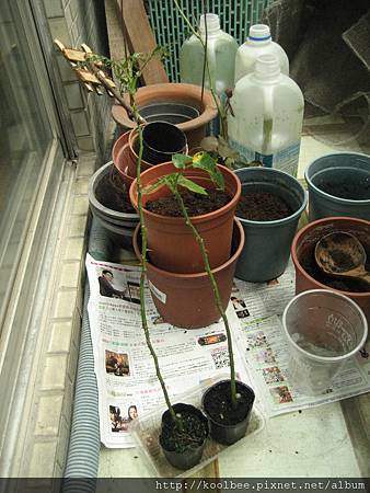 現代茶香玫瑰還能攀援,對我而言,只有神奇可言,唯一的缺點就是花色不是我的最愛。待在育苗軟盆太久,變得不太健康,有一株還被切葉蜂啃得面目全非,趕快換盆施肥,以免掛掉。
